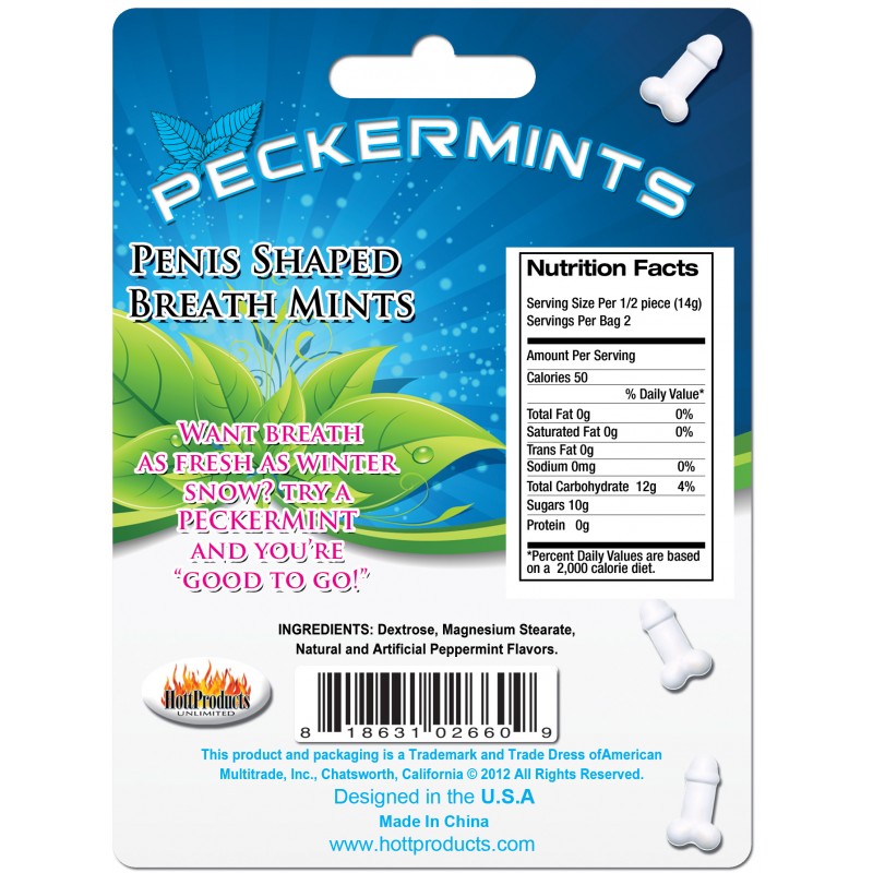 Want breath as fresh as winter snow? Try a PECKERMINT and you’re “good to go!” Rainbow Colored Penis Shaped Breath mints.
